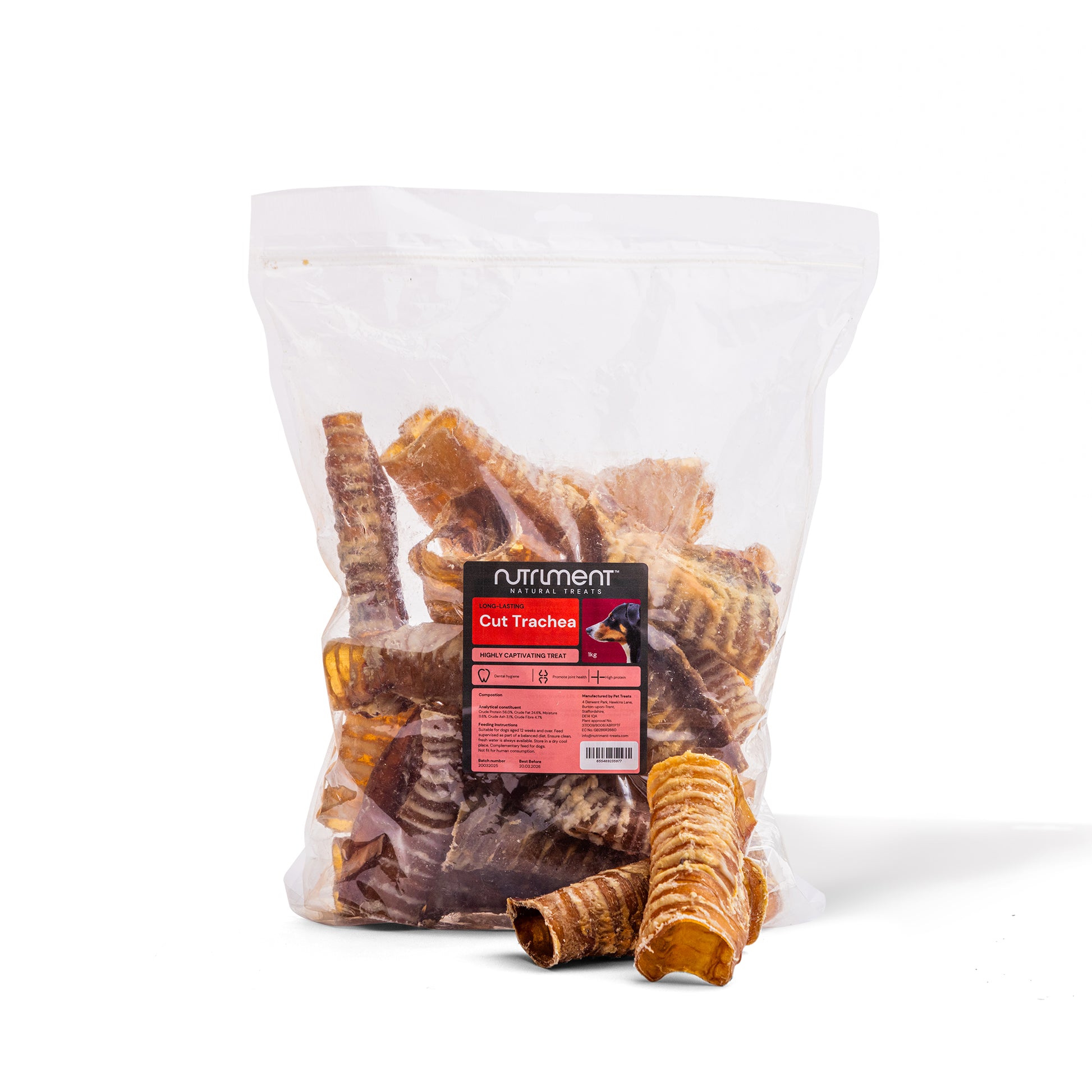 Our dehydrated Cut Beef Trachea or Gullet treats are hollow chews made from the windpipe of a cow. Their shape allows them to be filled with a variety of other products, such as your dogs regular food, making them even longer lasting. The cartilage that lines the outside of the trachea is rich in glucosamine and chondroitin.