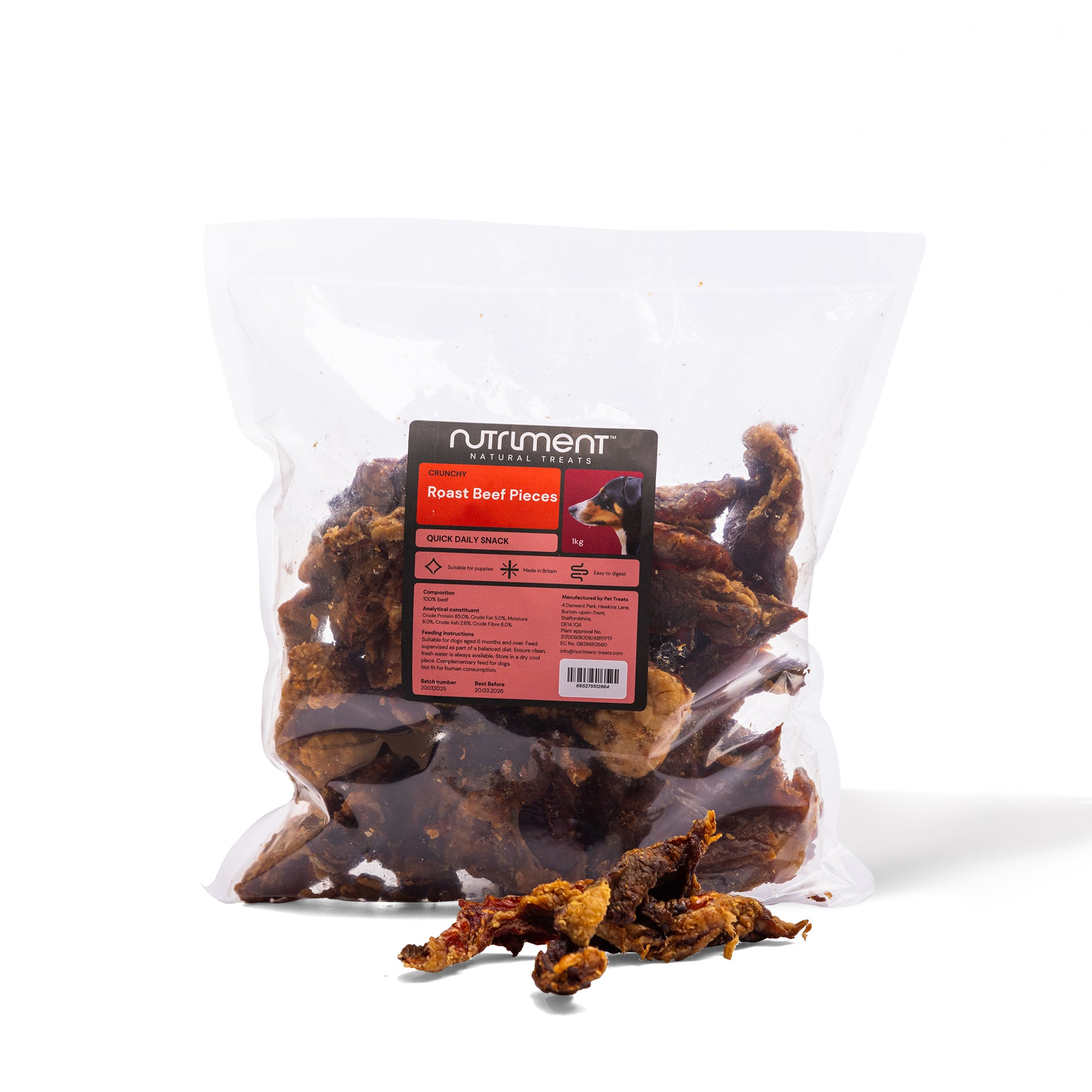 Our tasty Roast Beef Pieces are a delicious treat for dogs of all ages. Gently air dried, 100% beef, with no artificial flavourings - they are an easily digestible chew.