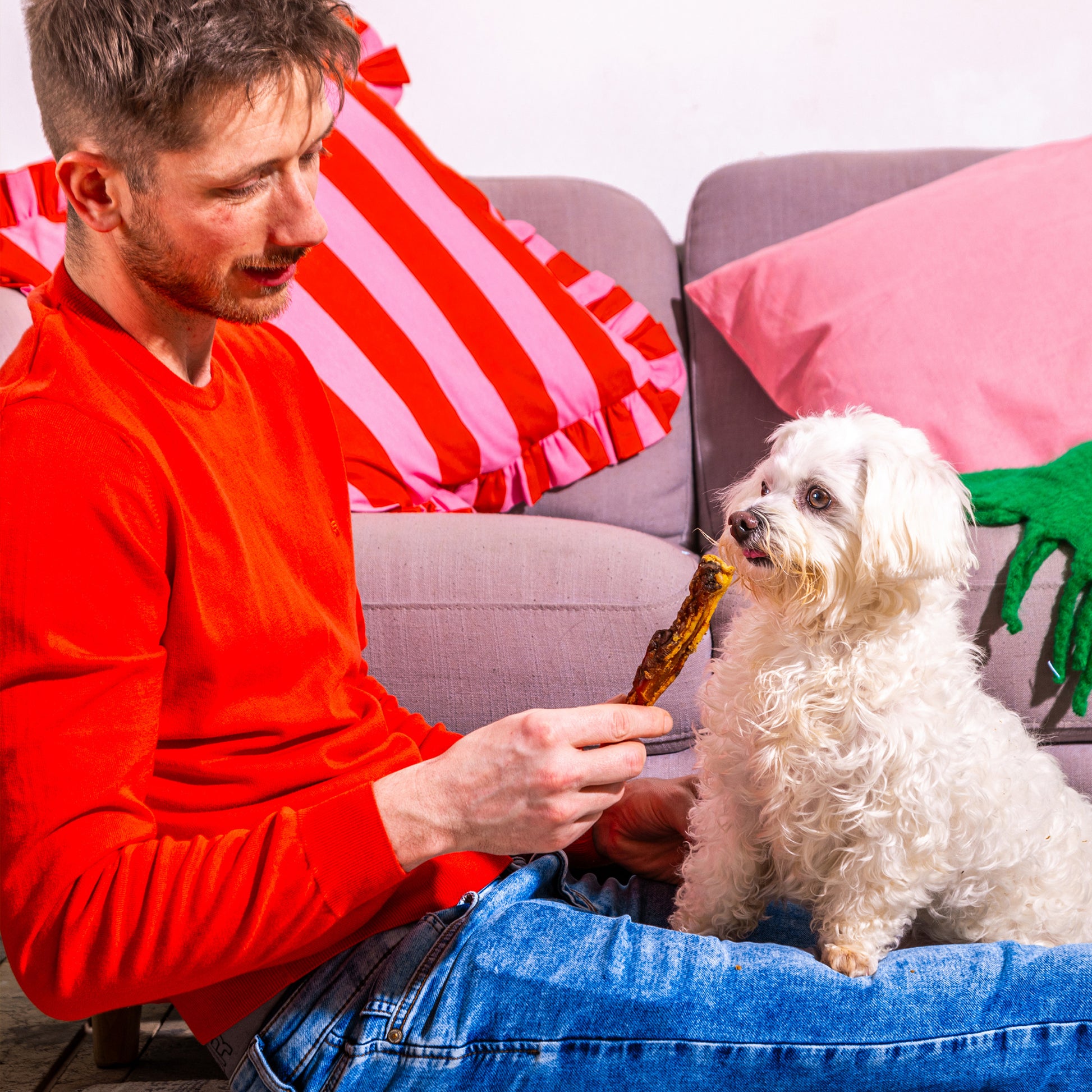 Our British Lamb Shoulder Strips or Lamb Paddy Wack are slowly roasted to give your dog a mouth-watering treat. 100% natural, with no other added ingredients they are highly palatable and easily digested, whilst being great for your pooch's oral health.