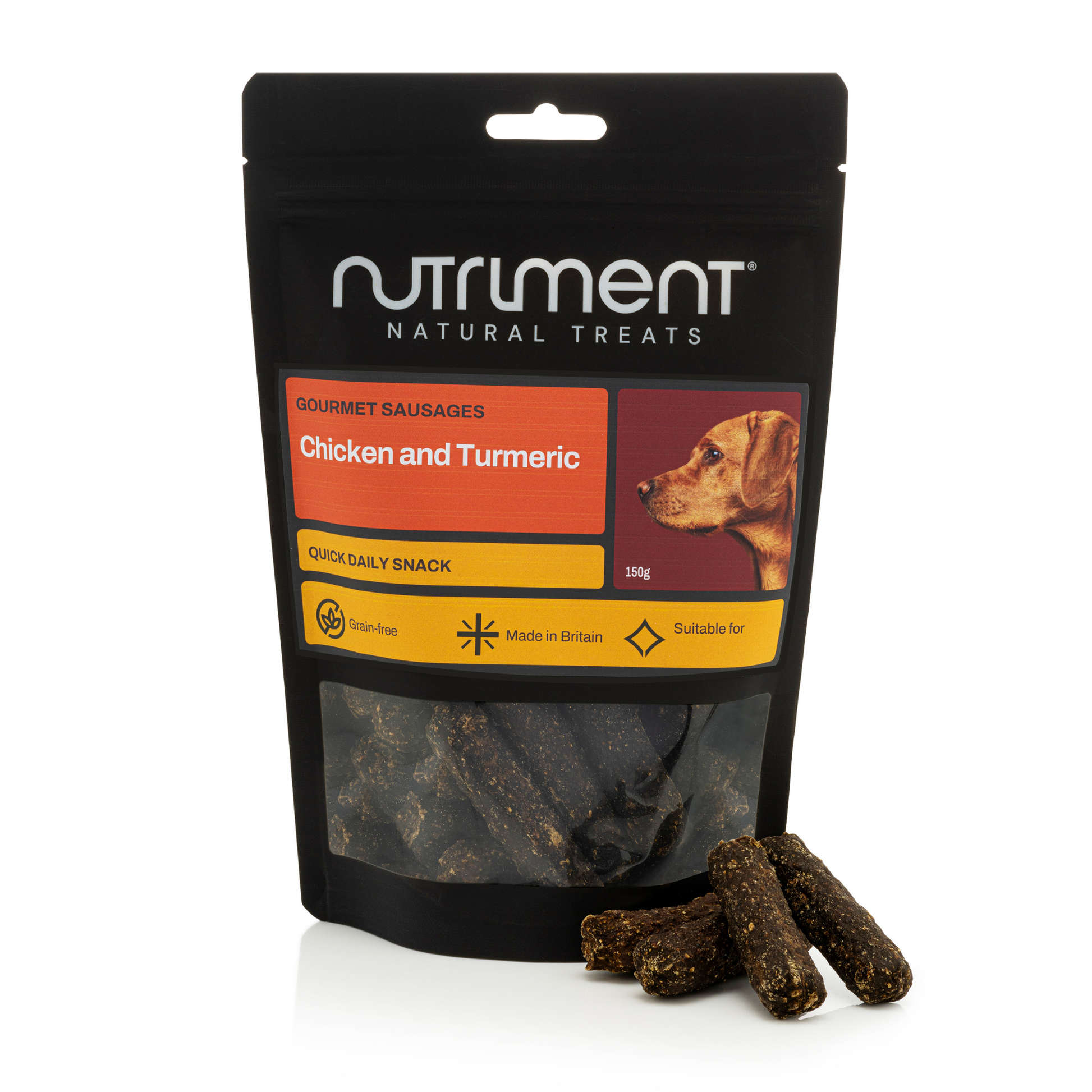 | Chicken and Turmeric (Golden Paste) Sausages | Chicken 80%, Turmeric 1%, Sweet potato, Minerals |