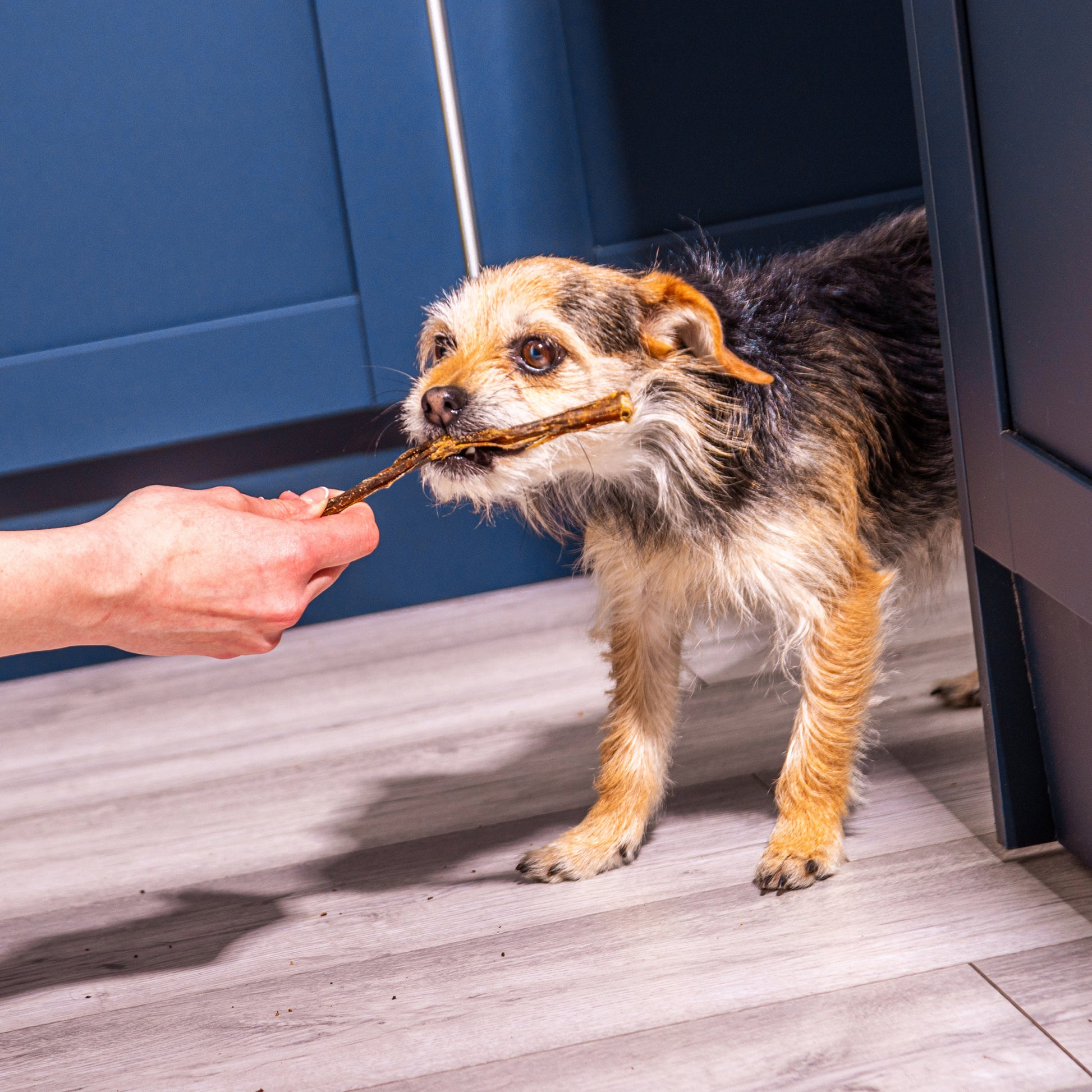 Our Beef Spaghetti is a completely natural, 100% beef dog treat. Made from cooked, then air dried, cow intestines, this is a slightly elastic, tasty snack. It offers chewing pleasure without any risk of large pieces splintering, and can be cut with scissors into small treats, making an awesome high-value reward during training.