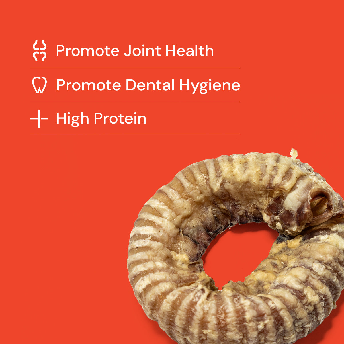 Our dehydrated Beef Trachea Rings are hollow chews made from the windpipe of a cow, bent into a continuous ring. The cartilage that lines the outside of the trachea is rich in glucosamine and chondroitin.