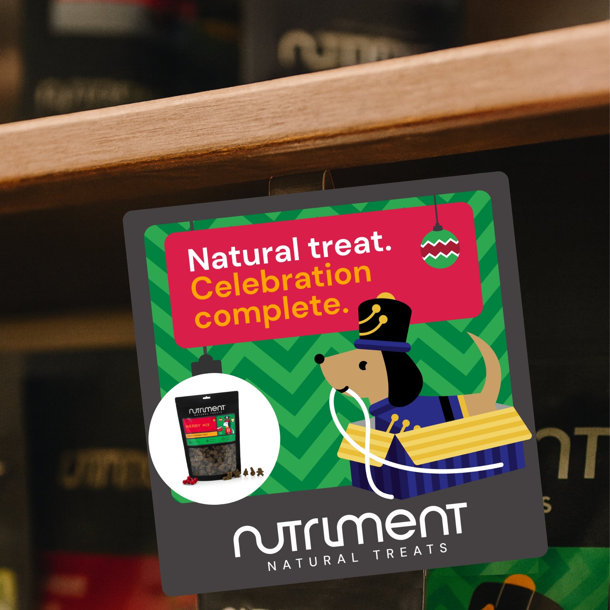 Designed to stop shoppers in their tracks, these bright, beautifully branded wobblers bring movement and energy to your retail display. Each wobbler features playful, festive designs that celebrate the joy of treating dogs at Christmas - instantly catching the eye and drawing attention to your seasonal products.