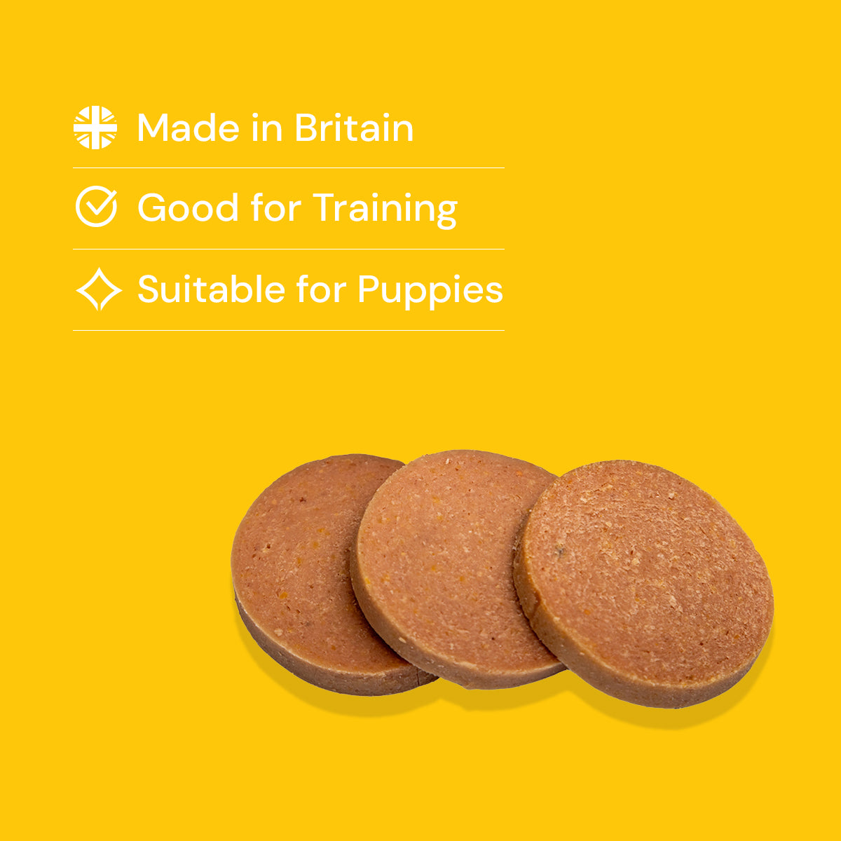 Spread, Slice, Train and Treat, our Gourmet Pate is a delectable and nutritious treat that will delight even the most discerning canine palates. Made in Britain with the finest, high-quality ingredients, our gourmet pate is specially crafted to provide a luxurious dining experience for your furry friend as well as ensures that your pup receives the best possible nourishment.