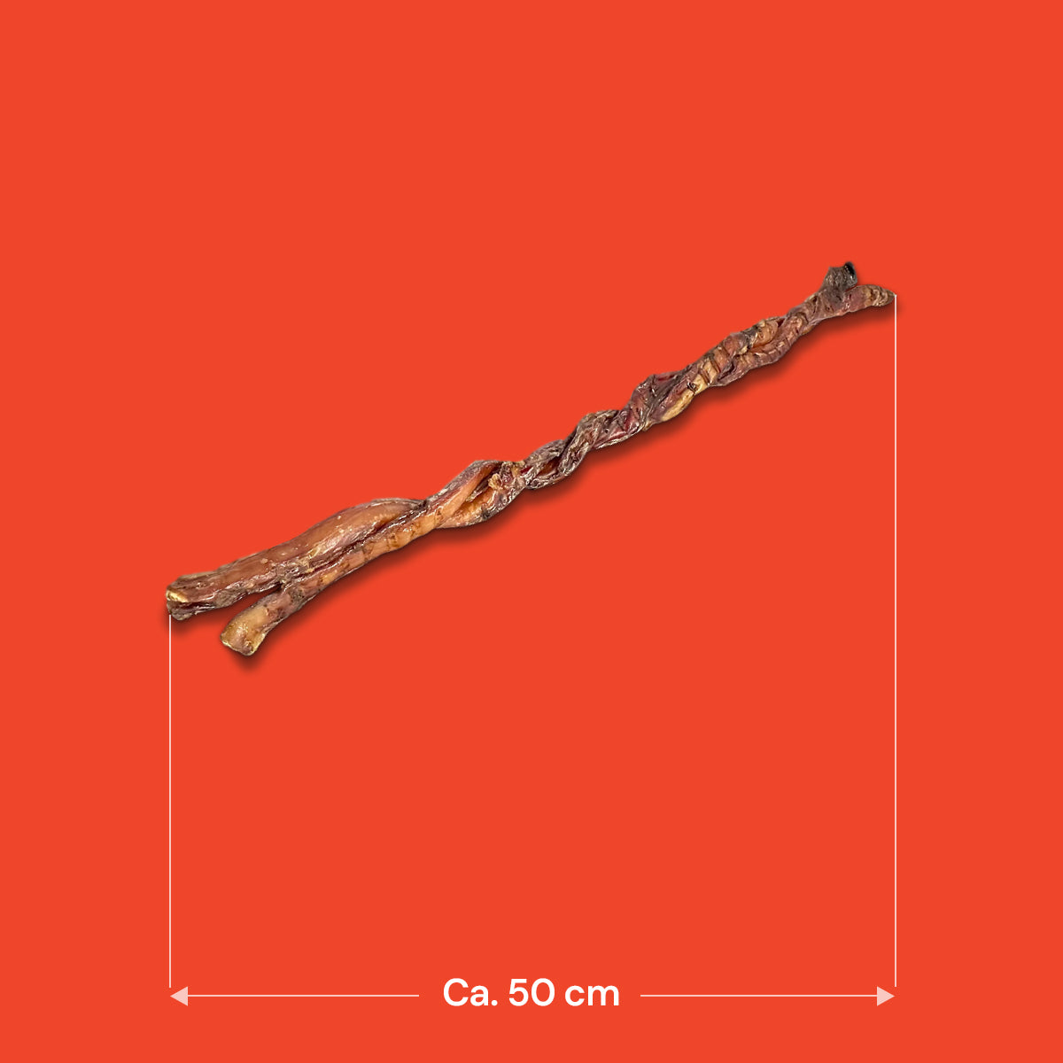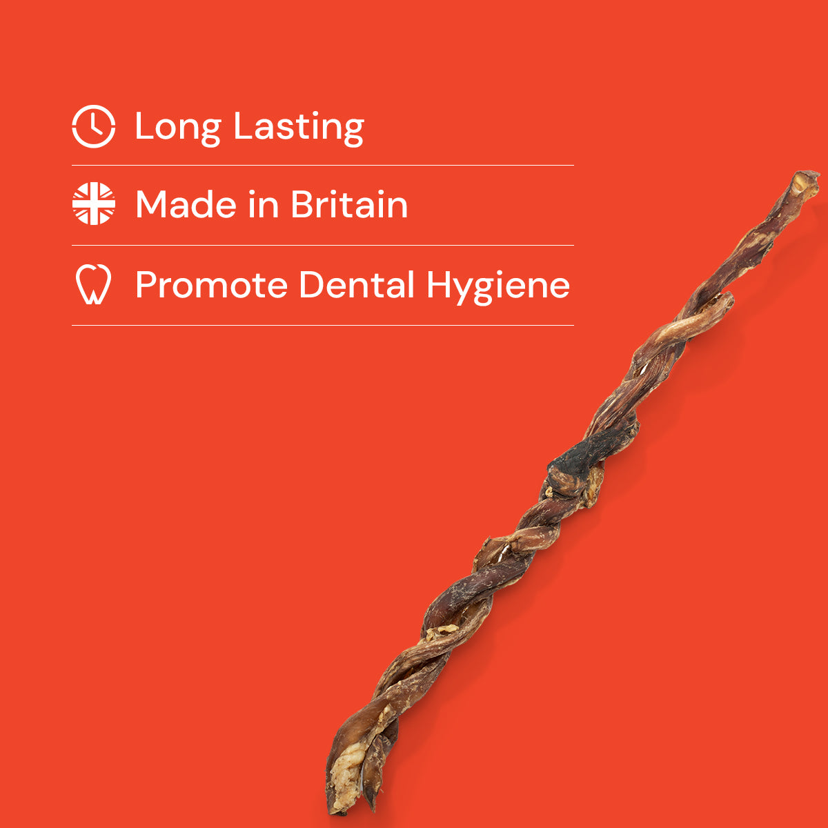 Our Jumbo British Twisted Pizzles (45-50cm) are considered one of the highest quality natural treats. Slowly dried, they produce a long-lasting, natural alternative to dental sticks and chews.