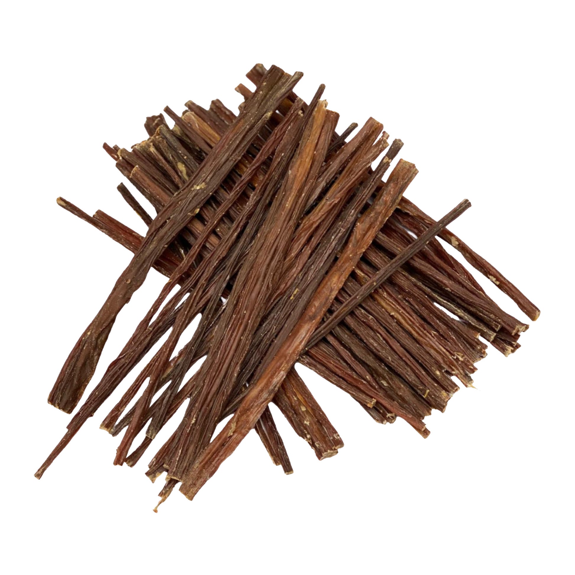 Pork spaghetti is a completely natural, 100% pork dog treat. Made from cooked, then air dried, pig intestines, this is a slightly elastic, tasty snack. It offers chewing pleasure without any risk of large pieces splintering, and can be cut with scissors into small treats, making an awesome high-value reward during training.